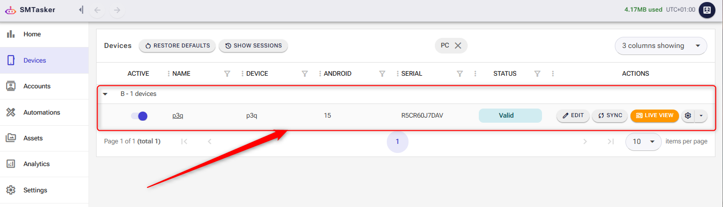 - Your phone will appear in the list on the Phones page as shown in the screenshot below