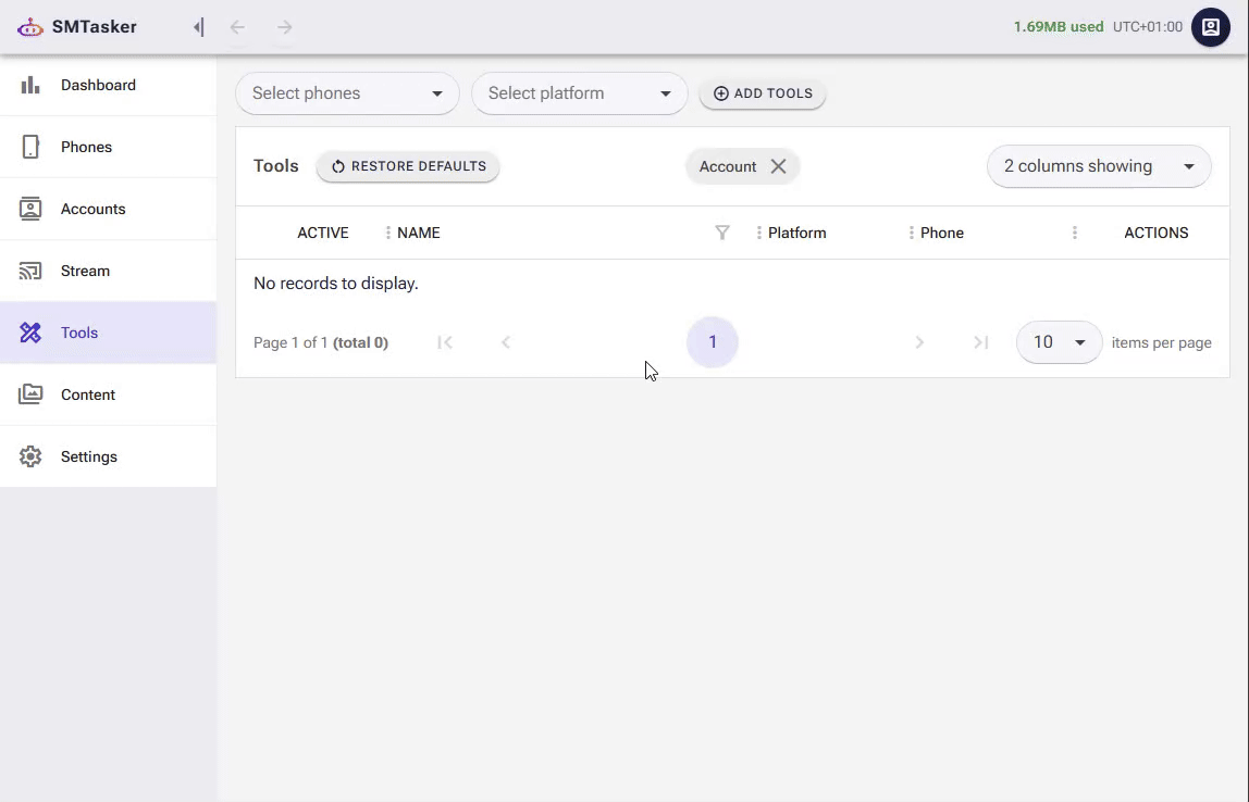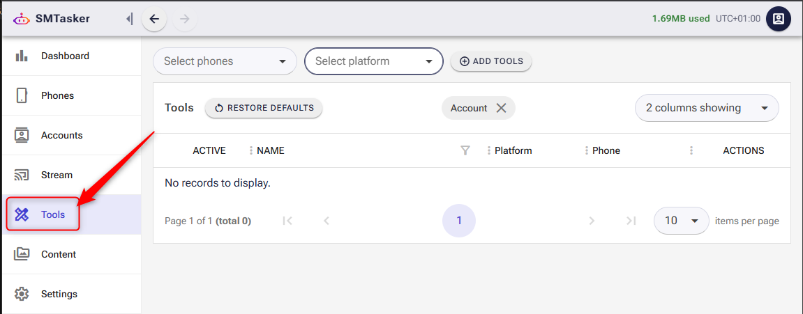 At the top of the Tools page, you’ll see an ADD TOOLS button. Click it.