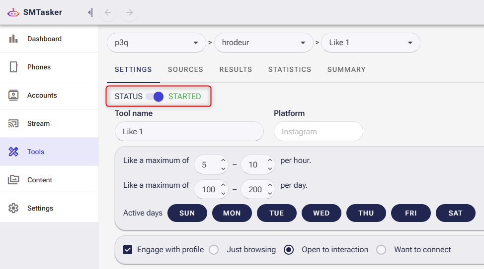 That’s it – your tool is now live! SM Tasker will start performing actions on your phone automatically based on the schedule and limits you set.