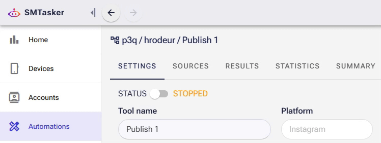 Now head over to the Automations page. Find Publish in your tools list and click on it. You’ll land on the SETTINGS tab.